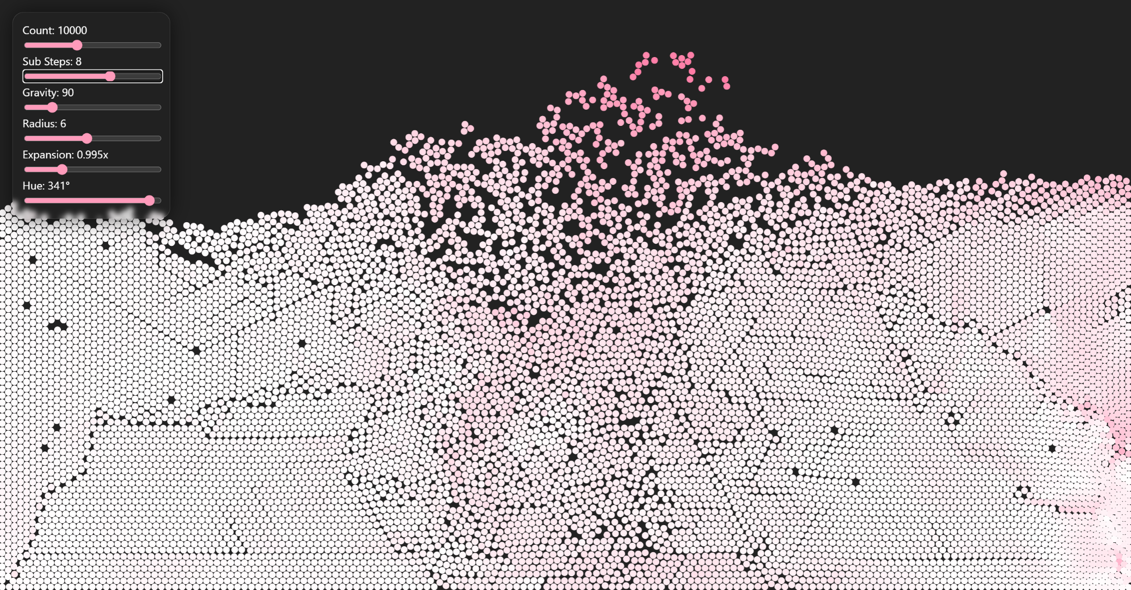CONTROLS: Left click or hold space while moving your cursor to throw a clump of particles.